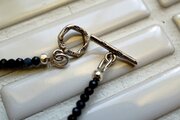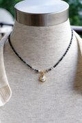 首に沿う程度の長さでお作りしたネックレスです。チョーカーのようにお付けいただければと思います。