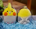 羊毛フェルトでできた、シナモンオカメインコのがま口です。