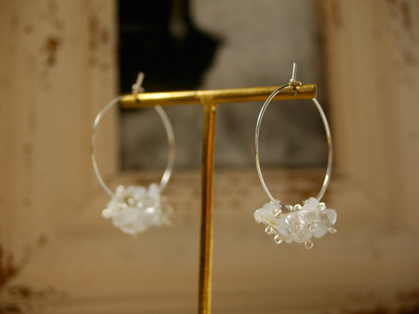 ビーズ全てが白ではありません。シルバーと白の2面ビーズとクリアー色ビーズも混ざっていて、全体的にホワイトっぽく見える感じです。