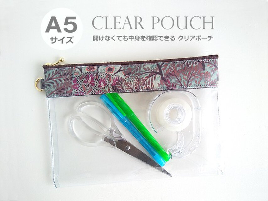 リバティ A5サイズ クリアポーチ (25) デビッドジョー グレー