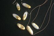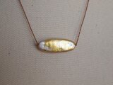 そのユニークな形と金とパールの色合いがあいまって、まるで地中から掘り出された鉱物のような、銀化した古代のローマングラスのような、不思議な趣のネックレスとなりました。