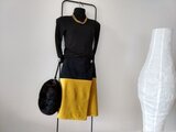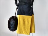 ★2種類のベロア★黒xマスタード★知的な巻きスカート風★刺繍飾りボタン付★