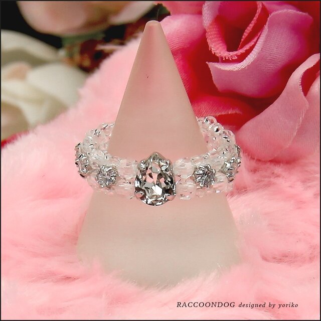 氷結のひとしずく【スワロフスキー&ジルコニア&プレシオサ ビーズリング】《ビーズアクセサリー》