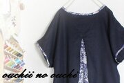 後ろ切り替え部分にリバティタナローンのyosieヨシエ煌めきシリーズ ネイビーブルー系をたっぷりいれています。