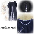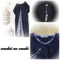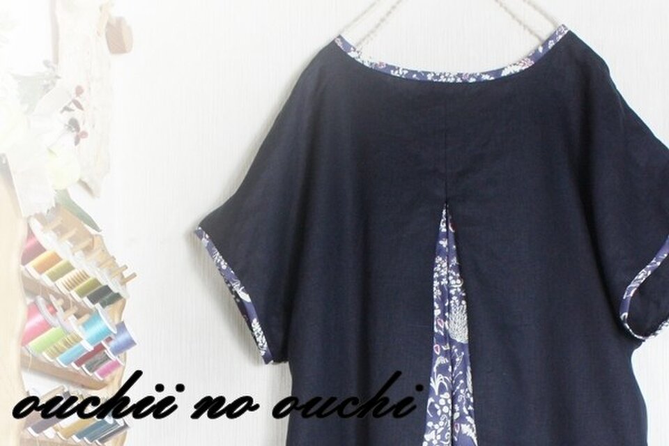 しっとりリネン ネイビーとリバティの大人気柄yosieヨシエ煌めきシリーズ ネイビーブルーでドルマンプルオーバーワンピースをおつくりしました。