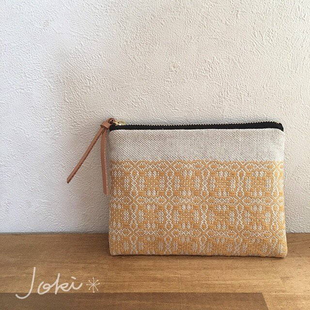 pouch[手織りミニポーチ]ナチュラルイエロー×ブラックファスナー