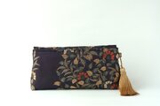 草花模様が華やかで品のあるシルクのリユース帯を使った、2way クラッチバックです。チェーンの取り外しが可能で、手提げバックとしてもお使い頂けます。