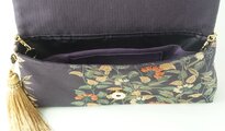 紺色がかった濃い紫の帯を使っています。市販のバックにはない高級感のある素材です。裏面にも贅沢に帯の表生地を使っています。