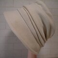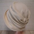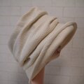 表地はコットン98%ポリウレタン2%のワッフルニット生地で作ったクロッシェ型の帽子です。色はオフホワイトになります。