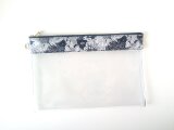 リバティの人気生地(ラミネート つや無し)、 Swim Dunclare スイム・ダンクレア(ネイビー)で中身が見えるクリアポーチを作りました。