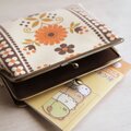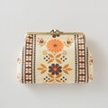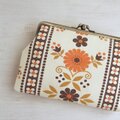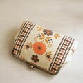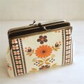 ■ヴィンテージ生地の三枚口のがま口ケース / ベージュにオレンジブラウンの花■