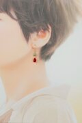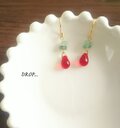 d1-36 心の安定【いちご】しずくドロップと【アベンチュリン】のアレンジピアス(パーツ変更可能)