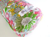 1978年から愛され続けていて、シンプルで可愛い花柄です。ファッションやインテリアにも合わせやすい柄です。地の色はホワイト、お花の色はオレンジ、イエロー、グリーン、スカイブルーなどのビタミンカラーです。