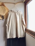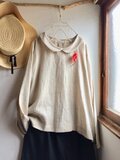 リネンの素朴な質感と丸襟の柔らかなデザインが