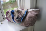 「Randers Tanker」私はデンマークのRanders という所で地元の人たちと共同生活をしていたことがあります。その時、着古して穴のあいた服や靴下を捨てず、大切に繕って使っている人たちを見て、モノを大切にするのはとても気持ちの良い事だなぁと感じました。作品の根源的なアイディア(Tanker)がその土地Randers から生まれたという意味を込めて、ブランド名をつけました。 作品へのこだわりは、ほぼ全ての物を手縫いで作っている事です。作品一つ一つは決して完成されたシルエットの物ではない…