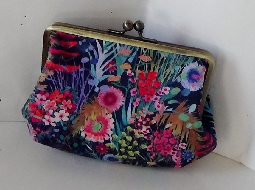 リバティ ホビーラホビーレ限定トレスコで作りましたがま口ふっくらポーチです
