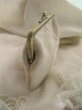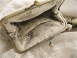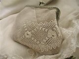 前回のアンティークアイリッシュクロッシェレースのがま口ポーチで使った襟レースの反対側の部分を使って作ったので同レース同デザインはこれが最後です