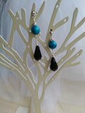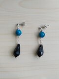 ターコイズの天然石をアーティスティックワイヤーで丸めて組み合わせたピアスです。
