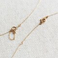 チェーンはK18イエローゴールドの一粒石がひきたつ細身で華奢なものを使用しており、長さが調整できる調整管(アジャスター管)付きですので、重ね付けにも便利です。上品なゴールドのチェーンは日常生活ではもちろんフォーマルなシーンでも大活躍です。肌になじむ美しいゴールドと石の相性は抜群です。