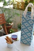北欧の伝統的な柄のScandinavian Favoriteで織り、仕立てたワインバッグです。