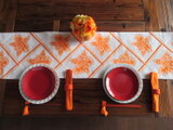 #帯 #テーブルランナー #帯テーブルランナー #テーブルセンター #帯テーブルセンター #リメイク #リバーシブル #麻の葉 #テーブルウェア #カトレア #オレンジ色 #パー ティー #イベント #お正月 #クリスマス #女子会 ひな祭り