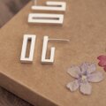 3way 四角 フープ ピアス + チェーン セット シルバー925