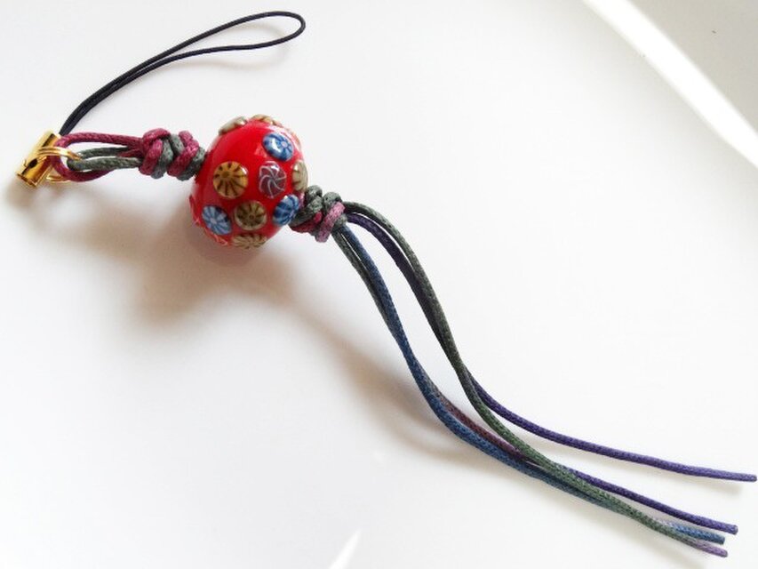 バーナーワークの技法で制作した、手作りのとんぼ玉のストラップです。