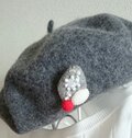 毛糸とビーズで刺繍をし、赤い木の実(フェルトボール)と小さなちいさな葉っぱをつけました。