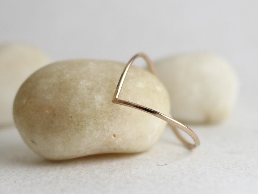 ひとつひとつ手でPinkGold K18 0.8mm線を鍛造した細身のリング。送料無料。