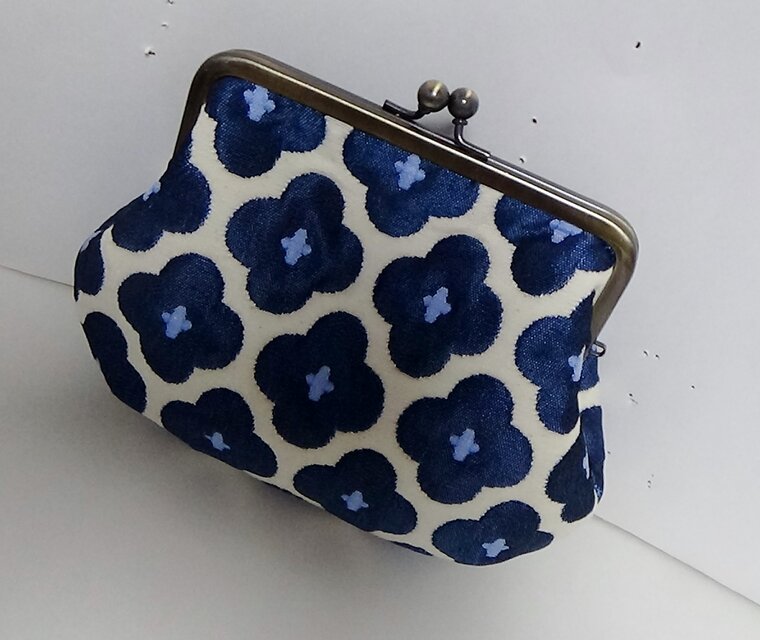 フランス生地で作りましたがま口ふっくらポーチ Sです
