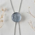 銀の木を描いた絵(原画)を樹脂でとじこめたループタイです。