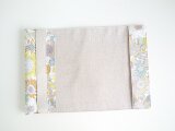 リバティの人気生地、 Small Susanna スモールスザンナ(イエローブラウン)とハーフリネンの生地でA5サイズのブックカバーを作りました。