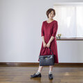 ・派手過ぎず、暗過ぎない絶妙な赤色生地をずっと探していたのですが、なかなか見つかりませんでした。そこで、生地屋さんにお願いして理想の赤色生地を特別生産。大人が似合い、毎日のように気軽に着れる、深みのある赤色です。