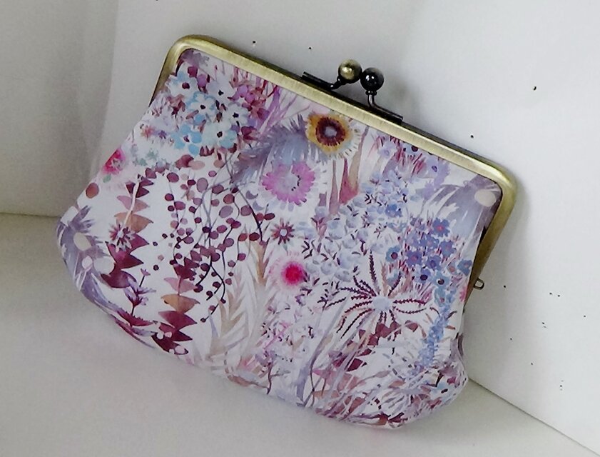 リバティ タナローン トレスコで作りましたがま口ふっくらポーチです