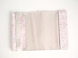 リバティの人気生地、ミルフルール Mille Fleurs(ライトピンク)とハーフリネンの生地でA5本サイズのブックカバーを作りました。