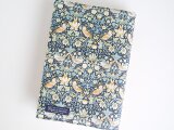 リバティの人気生地、ストロベリーシーフ Strawberry Thief(グリーン)とハーフリネンの生地でA5本サイズのブックカバーを作りました。