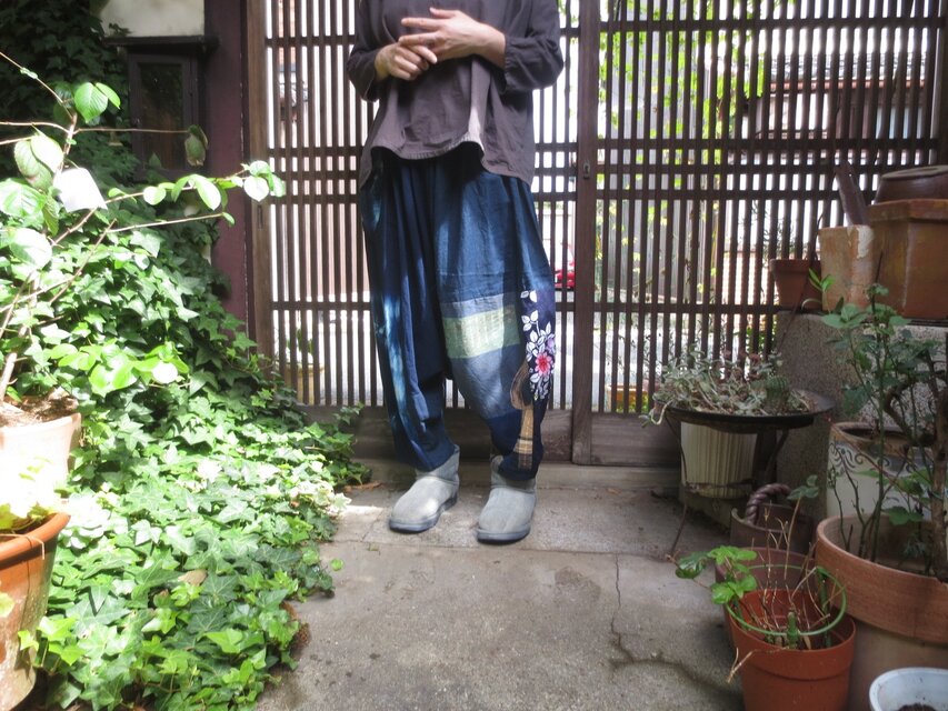 様々な素敵な古布を繋いで繋いでパッチされた木綿(絣他)のサルエルパンツ 期待以上想像以上にしっかりとした古布 更に全ての生地がセンス良く纏められて大好きな一本になります 嬉しいお買物でした またご縁をいただきたいと思えました 素敵です♡