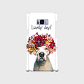 花冠をかぶったワンちゃんを、CMや映画、TV番組などで使われているベクターアート(光の量で細かく区分けした画像)で加工した画像を両面に配置致しました。