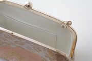 結婚式、パーティー、着物、日常使いに。がま口 リユース帯リメイク ハンドバック サーモンピンク、ゴールド