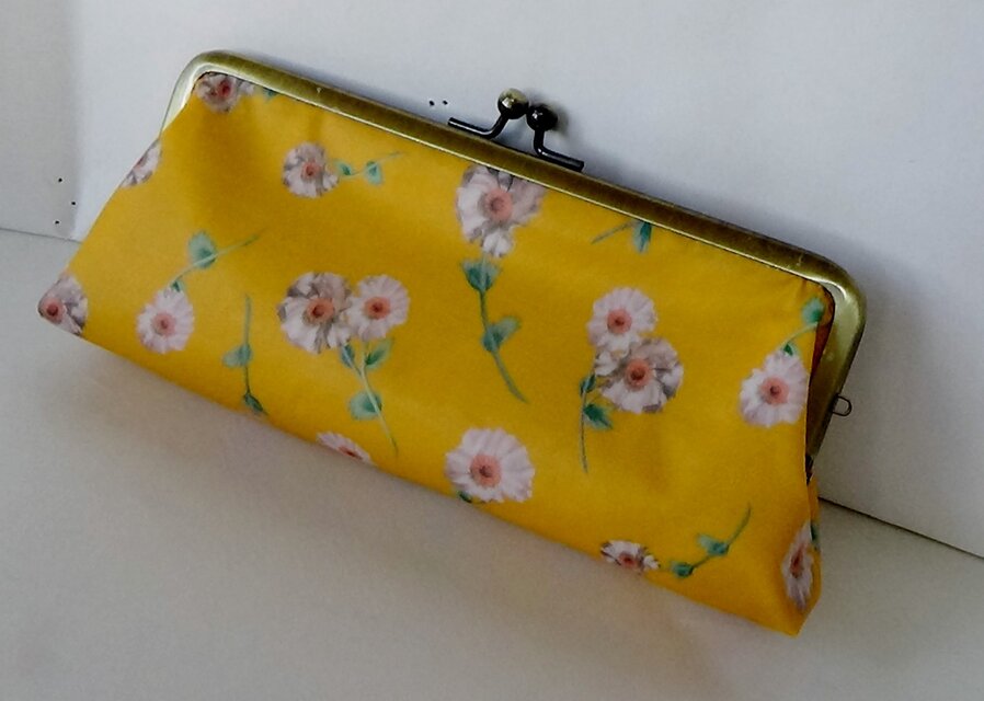 リバティ ラミネート メロディスモール(イエロー)で作りましたがま口ペンケースです