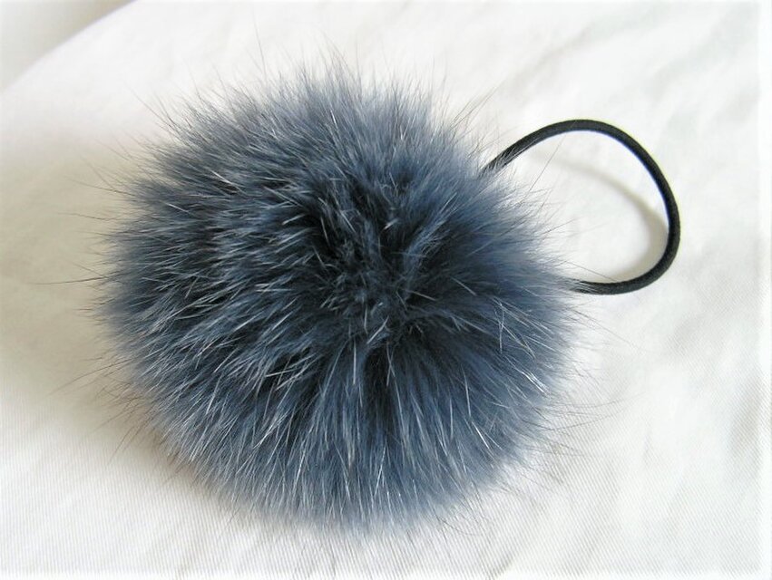 ¶ new antique fur ¶ 青染めフォックスファー大き目ボンボンヘアゴム