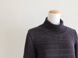 極細メリノウールのエンジとチャコールグレーを一本ずつ、さらにエンジの麻(ラミー)を加えた三本を引き揃えて編んだプルオーバーです。