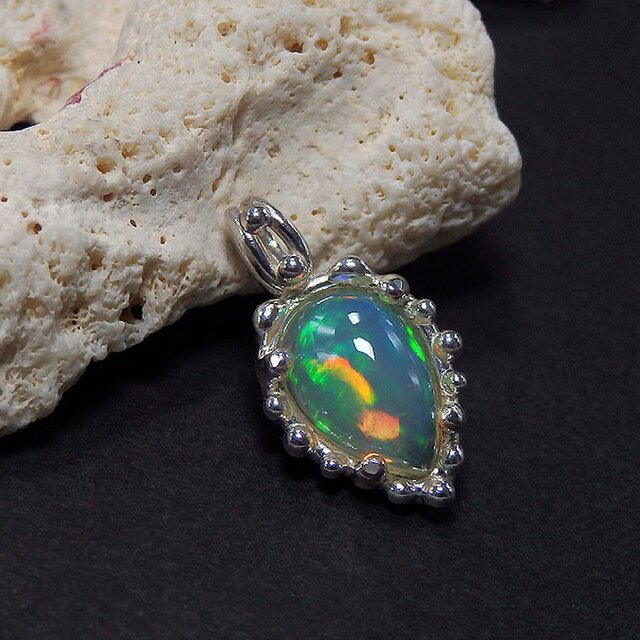 ~華やかなプレイオブカラー!~ エチオピアオパールの粒飾りペンダント