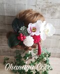 結婚式の前撮り用にお願いしました。 無事に前撮りが完了したので、感想書かせて頂きます。 自分では花の色合いや種類を決めることができず、色打掛の写真を元に作って頂きました。 完成品は依頼した通り、上品で存在感のある綺麗な花飾りでした。 実際に色打掛を着てヘアメイクさんに付けてもらったら、着物とピッタリ! 大大大満足です! お願いして本当に良かったです。 ありがとうございました。