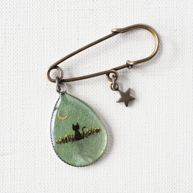 手描きのオリジナルイラストをレジンで閉じ込めたピンブローチです。