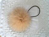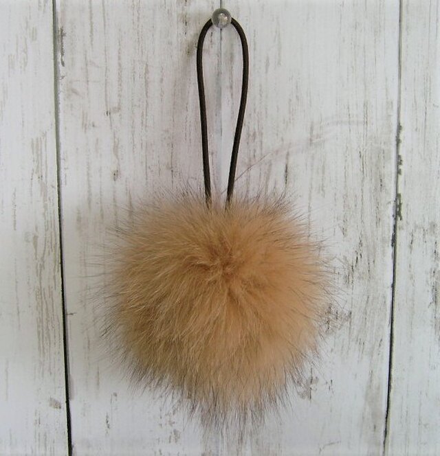 とても柔らかい印象のライトブラウンフォックスファーの大き目ボンボンヘアゴムです。