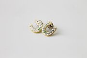 スワロフスキーのペリドットがさりげなく輝くコロンと可愛いホースシューのピアスです。