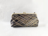 黒ベースの上に流れるように織り上げられた金糸銀糸の網目模様袋帯をチェーン付クラッチバッグにリメイクしました。