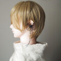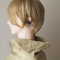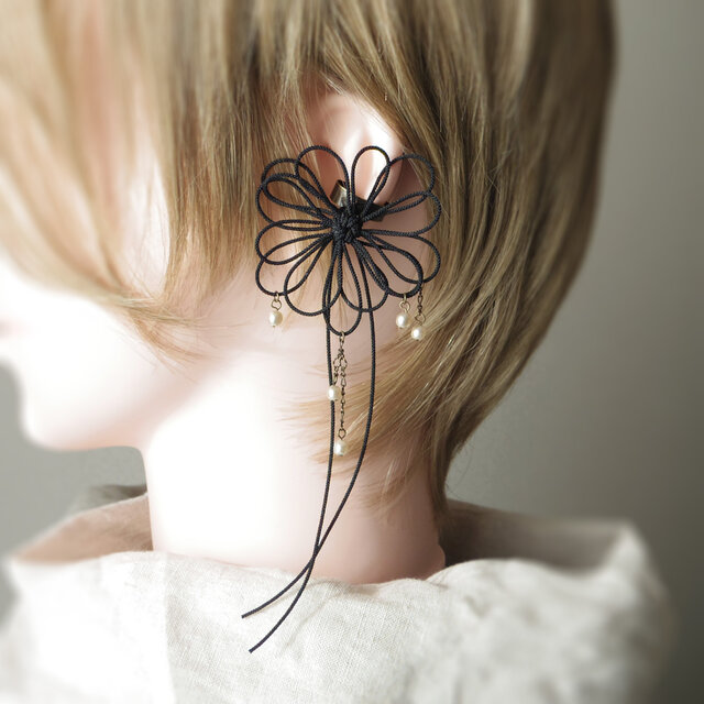 ※ご注意写真も掲載していますが、金具の破損防止のためお届け時はイヤーカフパーツが飾り結びに対して平行に「倒れて」いますのでそっとゆっくり起こしてください。90°きっちり起こす必要はありません。※