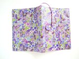 リバティの人気生地、マーガレットアニー Margaret Annie(パープル)のラミネート生地(つや無)でB5サイズ(大学ノート)のノートカバーを作りました。